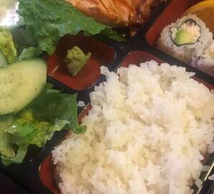 Includes the menu user reviews. Served with your choice of Egg Drop Miso or Hot Sour soup. Chicken teriyaki fried rice spring roll orange slices and salad.
